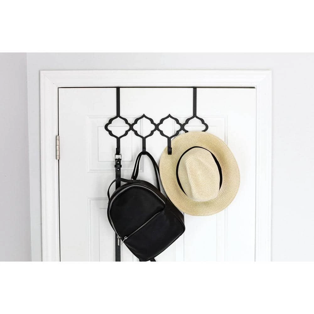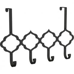 Organization with style has never been so easy. This over-the-door quatrefoil hook rack has 4 hooks for hanging light jackets, purses, towels, scarves and more. This item fits over doors for space saving while organizing and helps keep everything up and away.