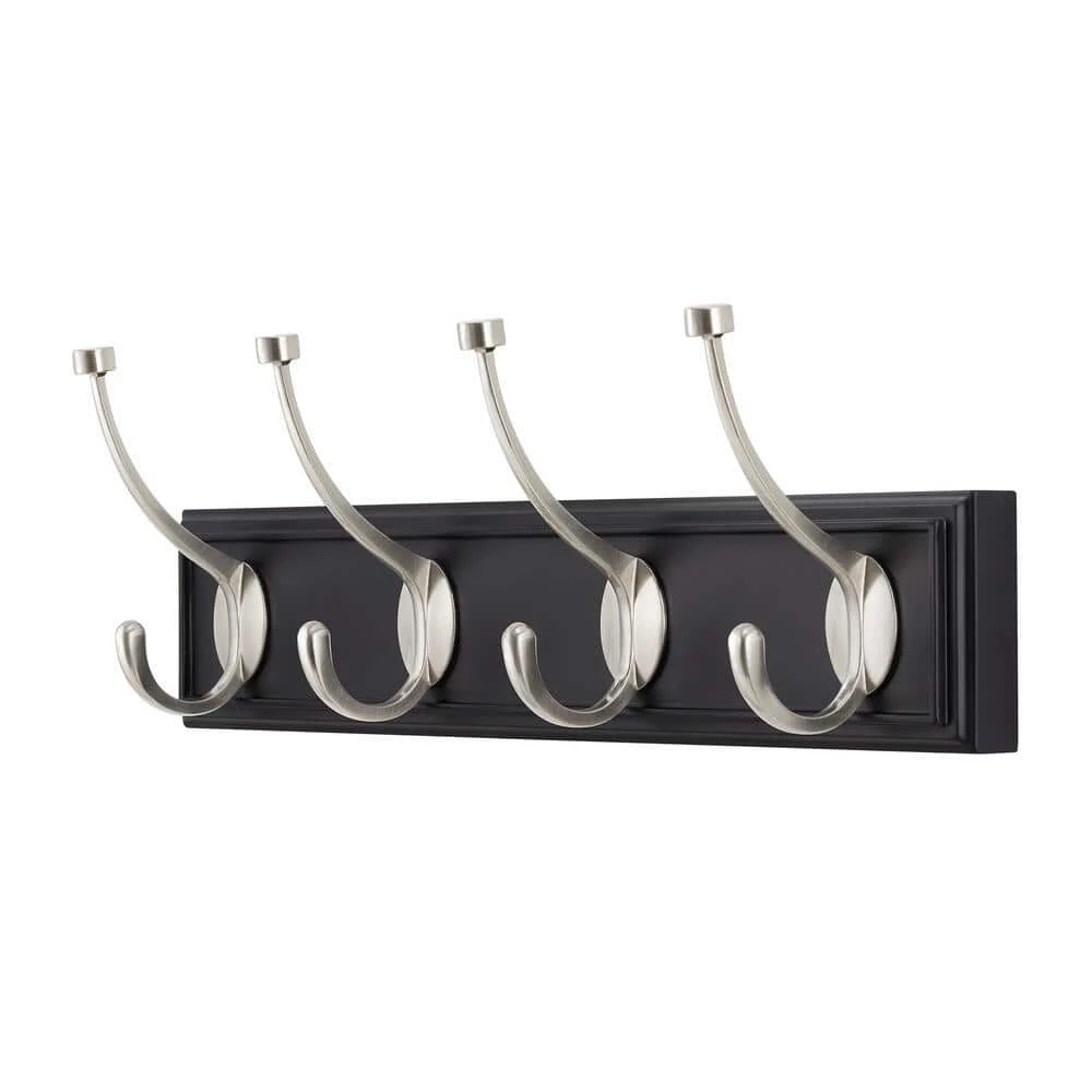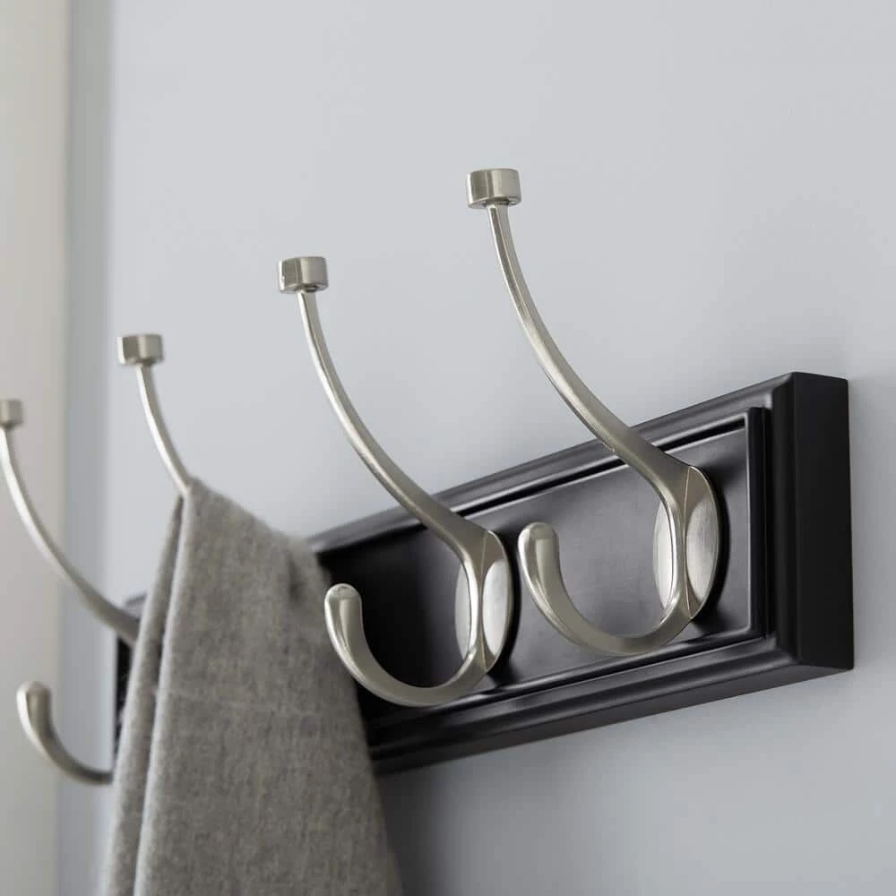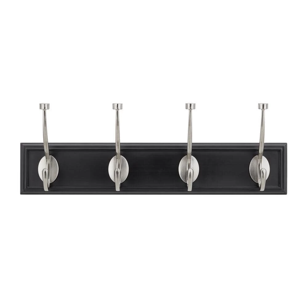 - Black rail with satin nickel hooks