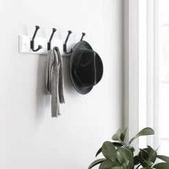 - Sleek pure white rack finish with matte black hooks offers a classic yet refined look that matches any home decor