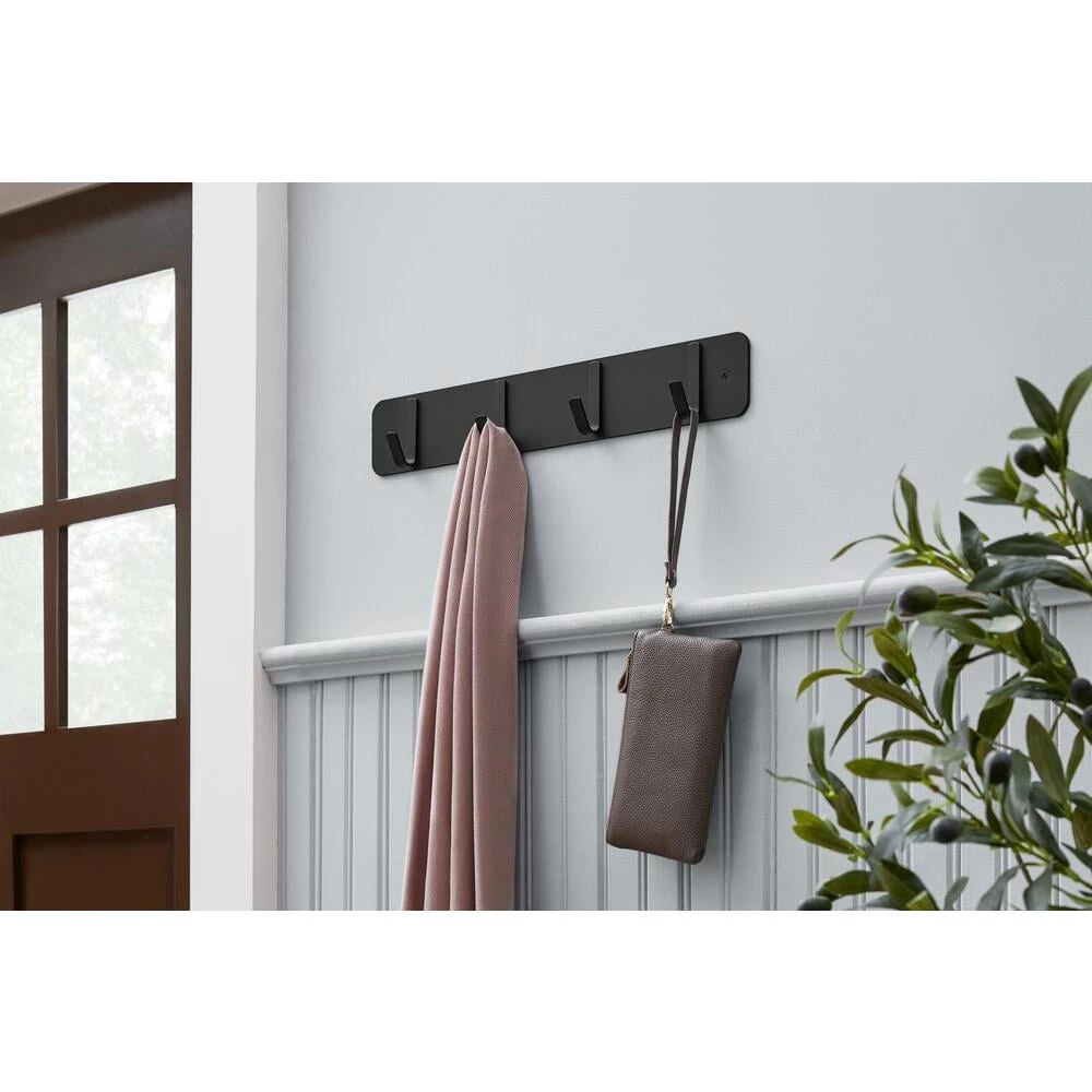 Add style and increase storage with this 18 in. hook rack from The Home Decorators Collection. The 4 stylish hooks make it ideal for multiple garment storage such as coats, robes and clothing. Installation on studs is recommended, but the rack can also be mounted with the appropriate anchors. Includes a level and snap install design for easy installation.