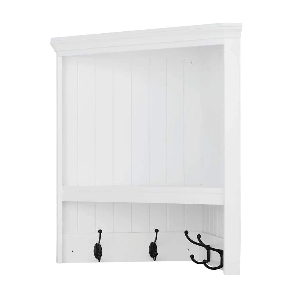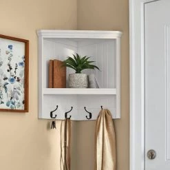 24 in. H x 24 in. W x 13.4 in. D White Shiplap Floating Decorative Cubby Corner Wall Shelf with Hooks by Home Decorators Collection