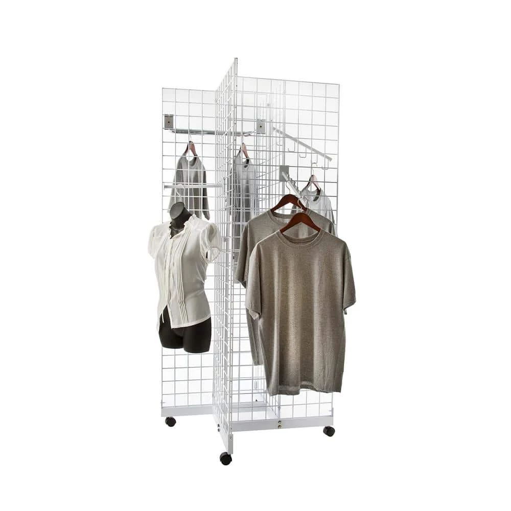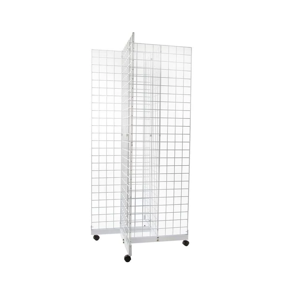 Base accepts four grid panels to creates a moveable display. Sturdy metal construction. Great for home use or seasonal storage.