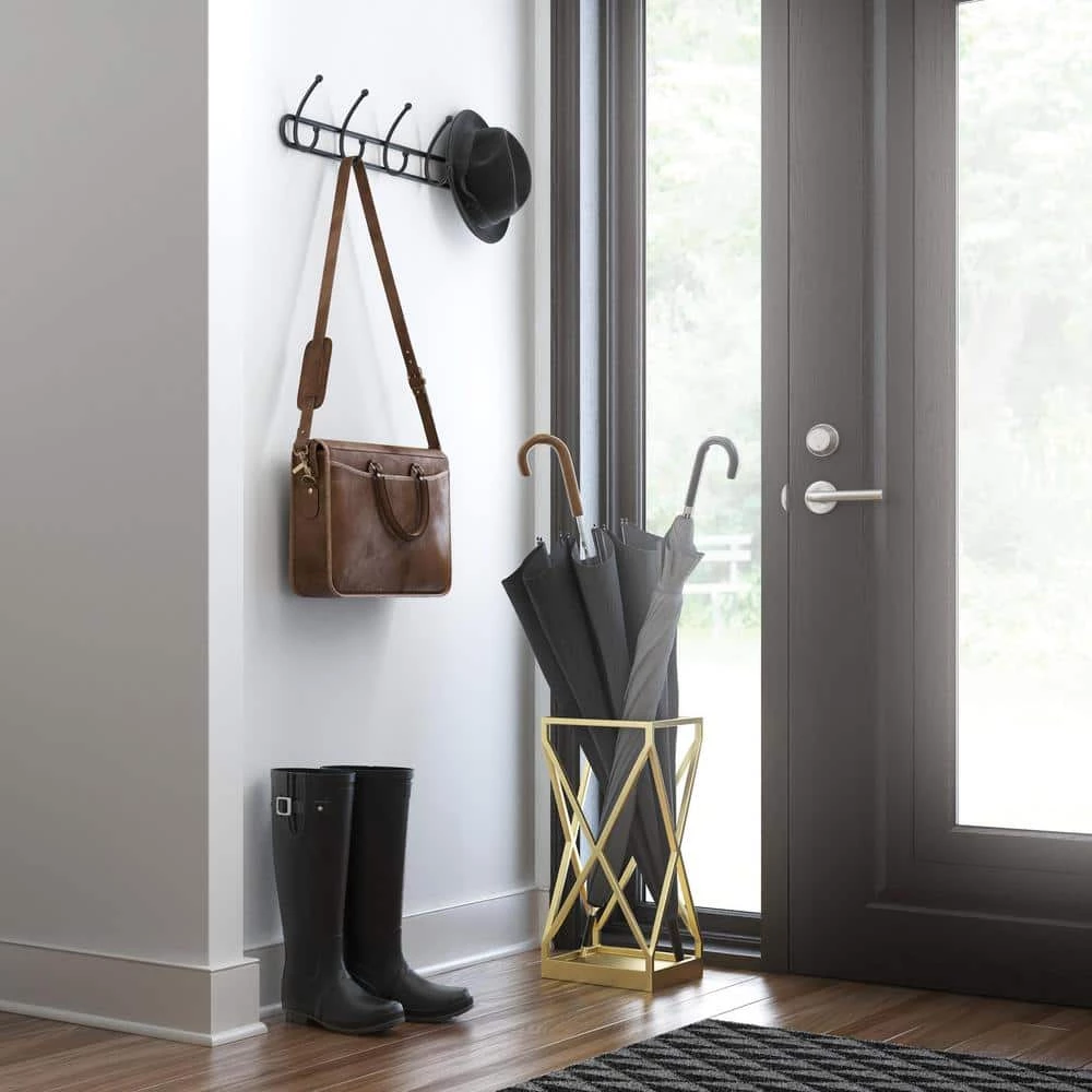 This 27 in. wire hook rack makes a great addition for your organization needs. The 5 hooks can hold your coats, hats, handbags, bookbags, robes and towels. This hook rack perfectly complements a casual modern home decor style.