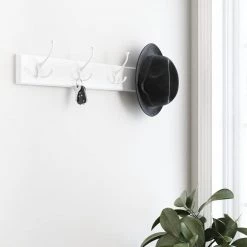 Looking for ways to increase storage and scale back clutter. This decorative rack with 5 flared tri-hooks is designed to hold a wide variety of items like coats, hats, handbags, umbrellas, towels or robes. This casual design is perfectly suited to match the decor of any room in your home.