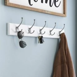Looking for ways to increase storage and scale back clutter. This decorative rail with 5 flared tri-hooks is designed to hold a wide variety of items like coats, hats, handbags, umbrellas, towels or robes. This casual design is perfectly suited to match the decor of any room in your home.
