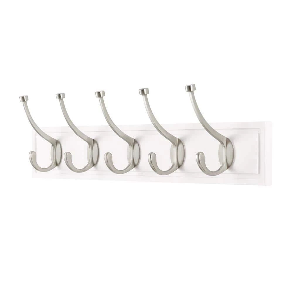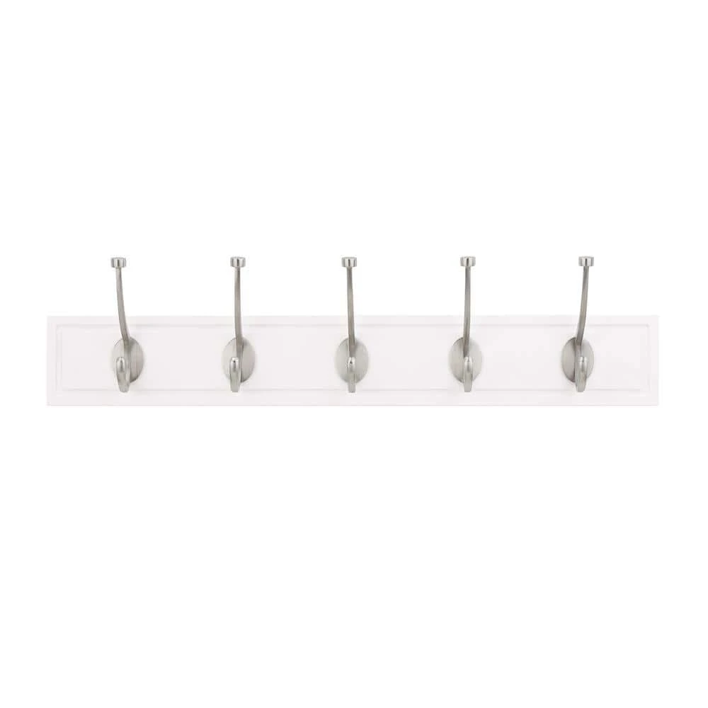 Add style and increase storage with this Hook and Rail rack from The Home Decorators Collection. The 5 satin nickel hooks make it ideal for multiple garment storage such as coats, robes and clothing. Installation on studs is recommended, but the rack can also be mounted with the appropriate anchors. Durable and easy to install, it’s convenient for hallways, closets and other areas.