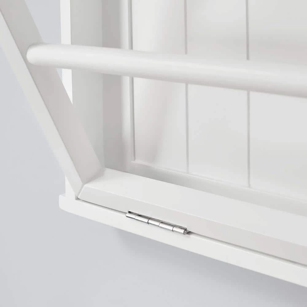 Create a convenient storage area in your space for your garments with this white HDC wood laundry and garment rack portable wardrobe. The pine wooden rods provide strength, and the collapsible design is easy to fold, letting you minimize the footprint if needed. This wall-mounted HDC wood laundry and garment rack portable wardrobe has included straps for hassle-free portability, and the white finish helps brighten up your laundry room or closet.