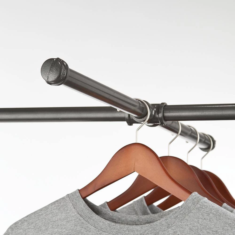 The Pipeline collection is a uniquely designed merchandising collection based on the traditional industrial grade clothing racks popularized in New York’s garment center. This stylized and refined version incorporates interconnecting plumbing pipes and various plumbing connectors. Pipes come in anthracite gray finish.