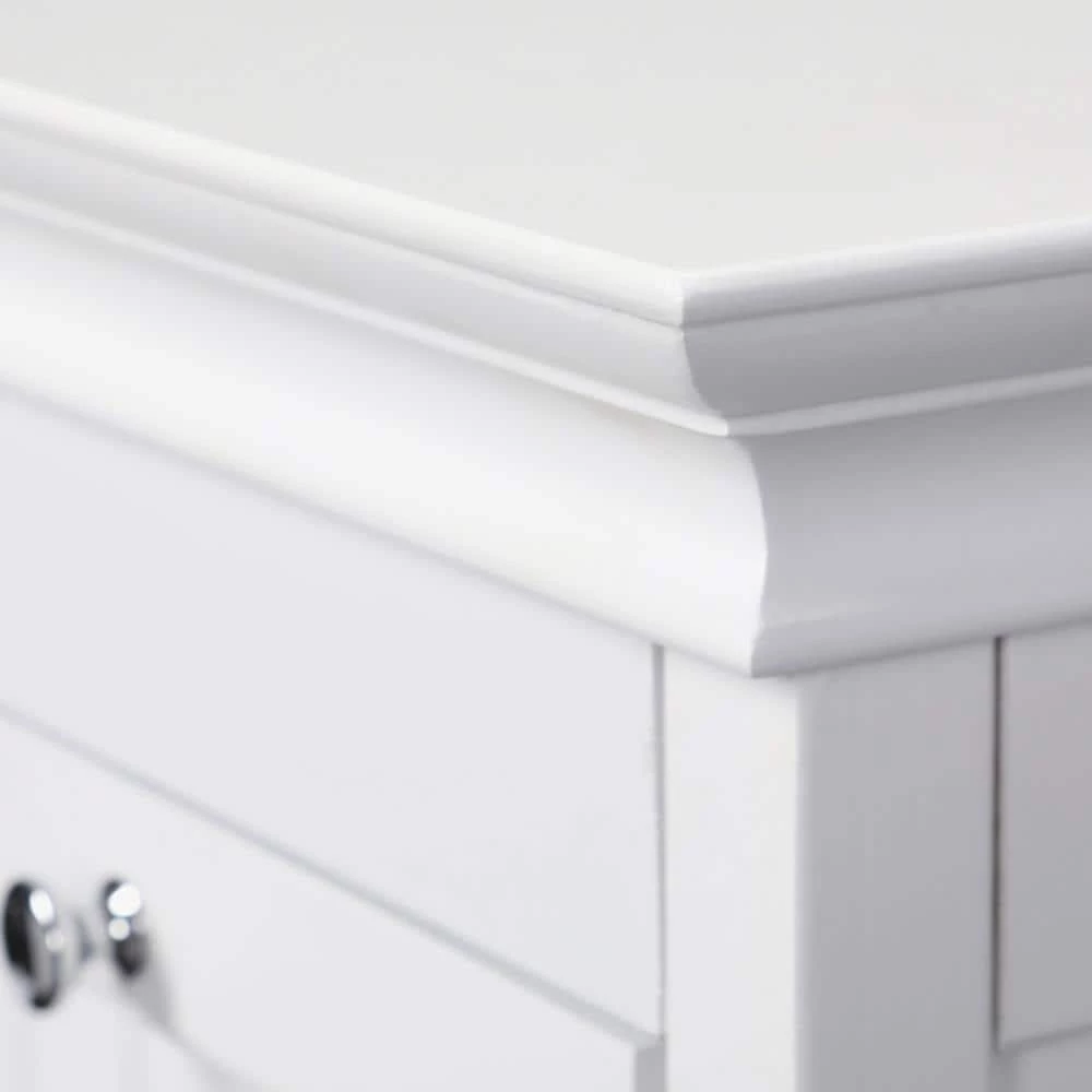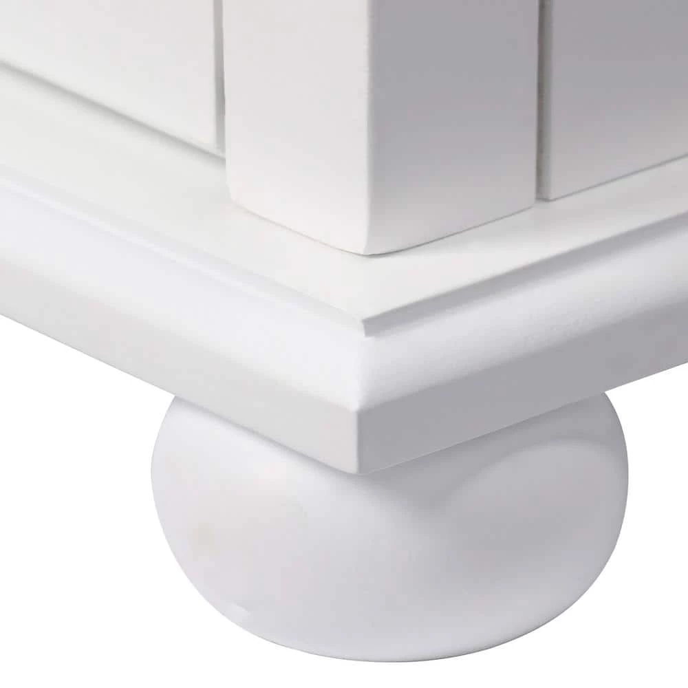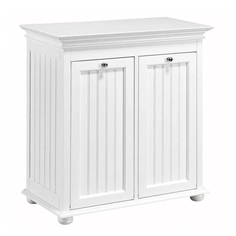 From Home Decorators Collection, the Hampton Harbor Double Tilt-Out Hamper is durably crafted to hold up to frequent use. Crown molding, recessed beaded-board panels, ball feet and chrome-finished hardware give this lovely clothes hamper contemporary casual style that complements farmhouse, cottage and transitional decorating concepts. Perfect for keeping laundry sorted in the bedroom or bathroom, this hamper could also be used in the kitchen for recyclables.