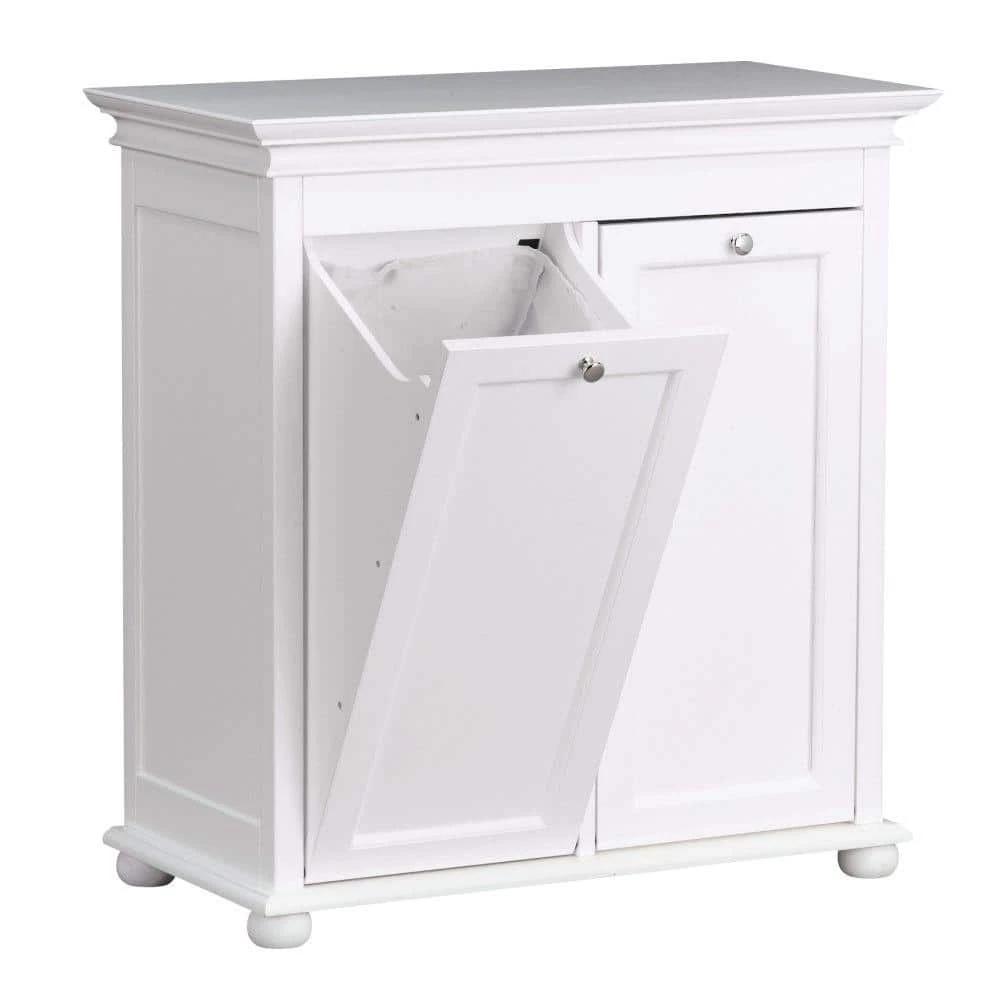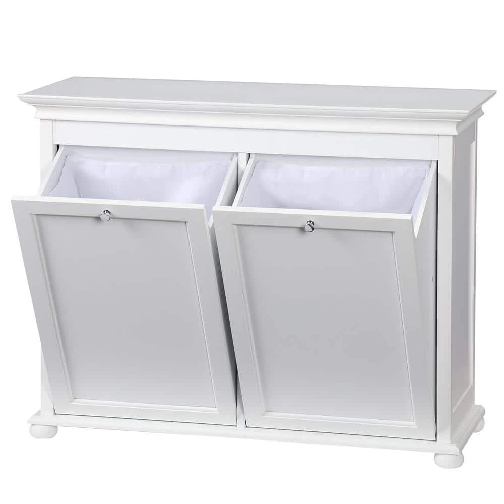 The tilt-out design of the Hampton Harbor Double Hamper allows you to conveniently sort and store your laundry in style. This traditionally designed laundry hamper is durably constructed to withstand heavy use. Its timeless crown molding, recessed panels and bun feet complement a variety of decorating styles, while its lovely white finish brightens your bath. You might also try it in the kitchen to sort recyclables.