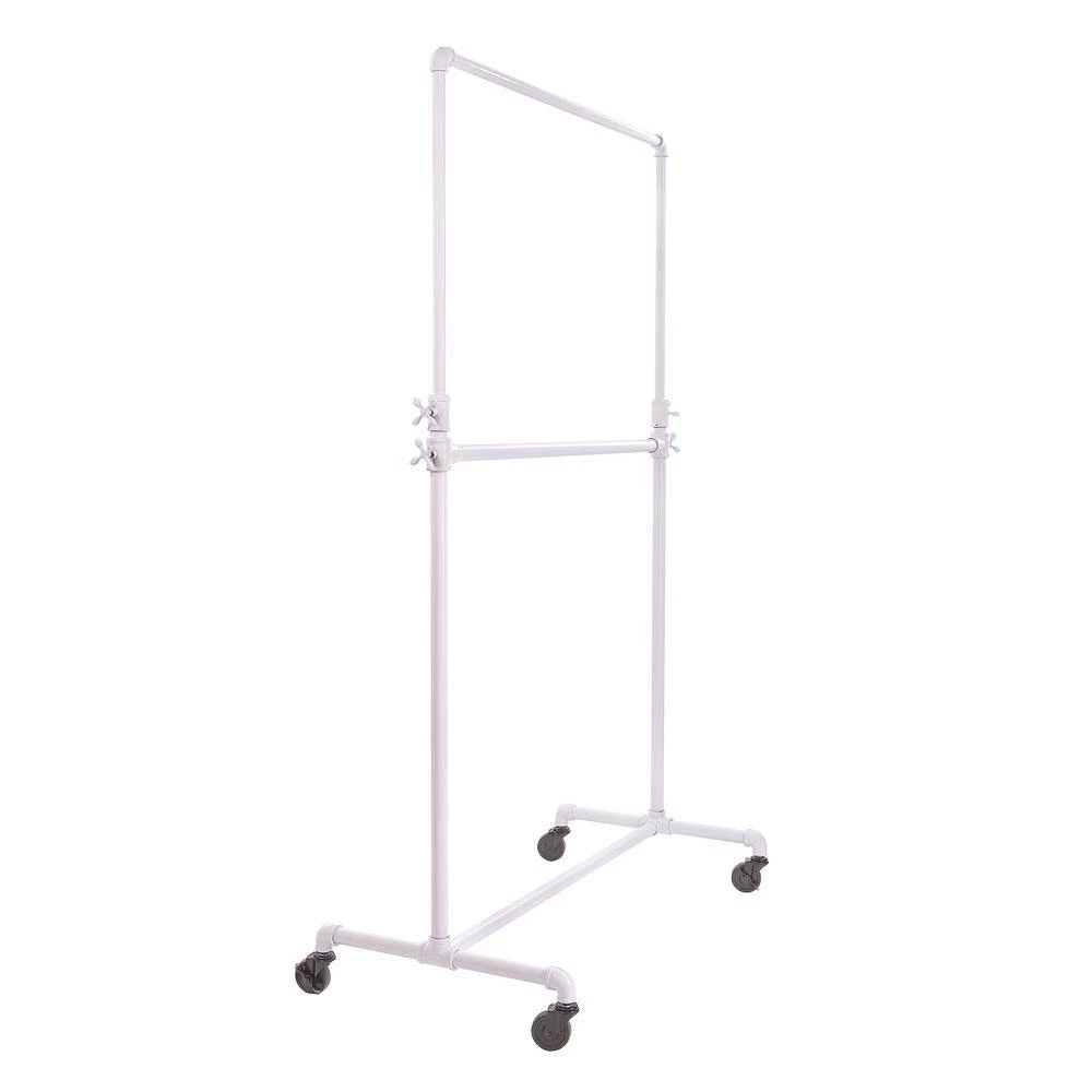 The Pipeline collection is a uniquely designed merchandising collection based on the traditional industrial grade clothing racks popularized in New York’s garment center. This stylized and refined version incorporates interconnecting plumbing pipes and various plumbing connectors. Pipes come in gloss white finish.