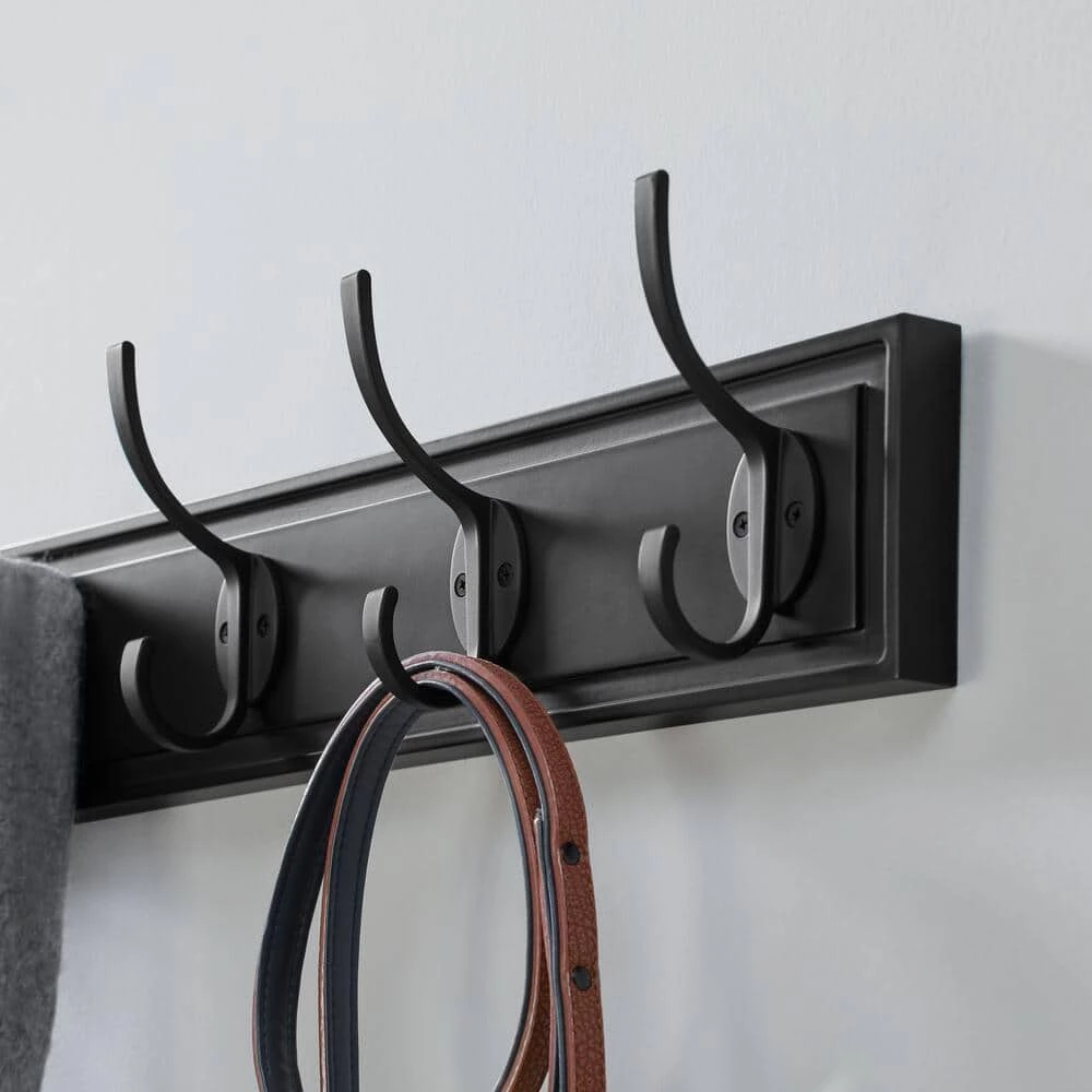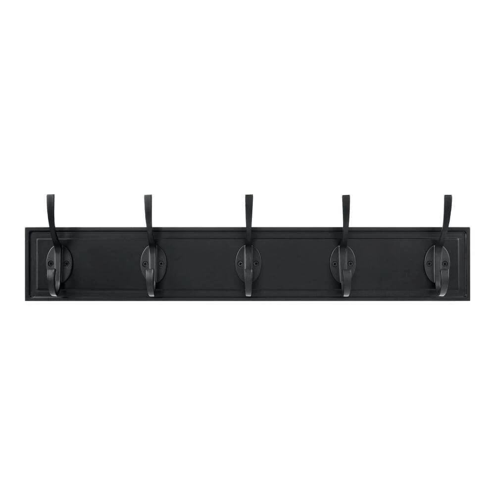Keep your items organized with this 27 in. wall hook rack from the Home Decorators Collection. It’s a simple storage solution for your home or office space, accommodating items such as keys, bags, some clothing and more. The durable unit easily mounts to walls. It features a black finish to suit a range of styles.