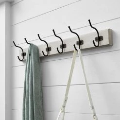 Keep your items organized with this 27 in. wall rack with hooks from the Home Decorators Collection. It’s a simple storage solution for your home or office space, accommodating items such as keys, bags, some clothing and more. The durable unit easily mounts to walls.