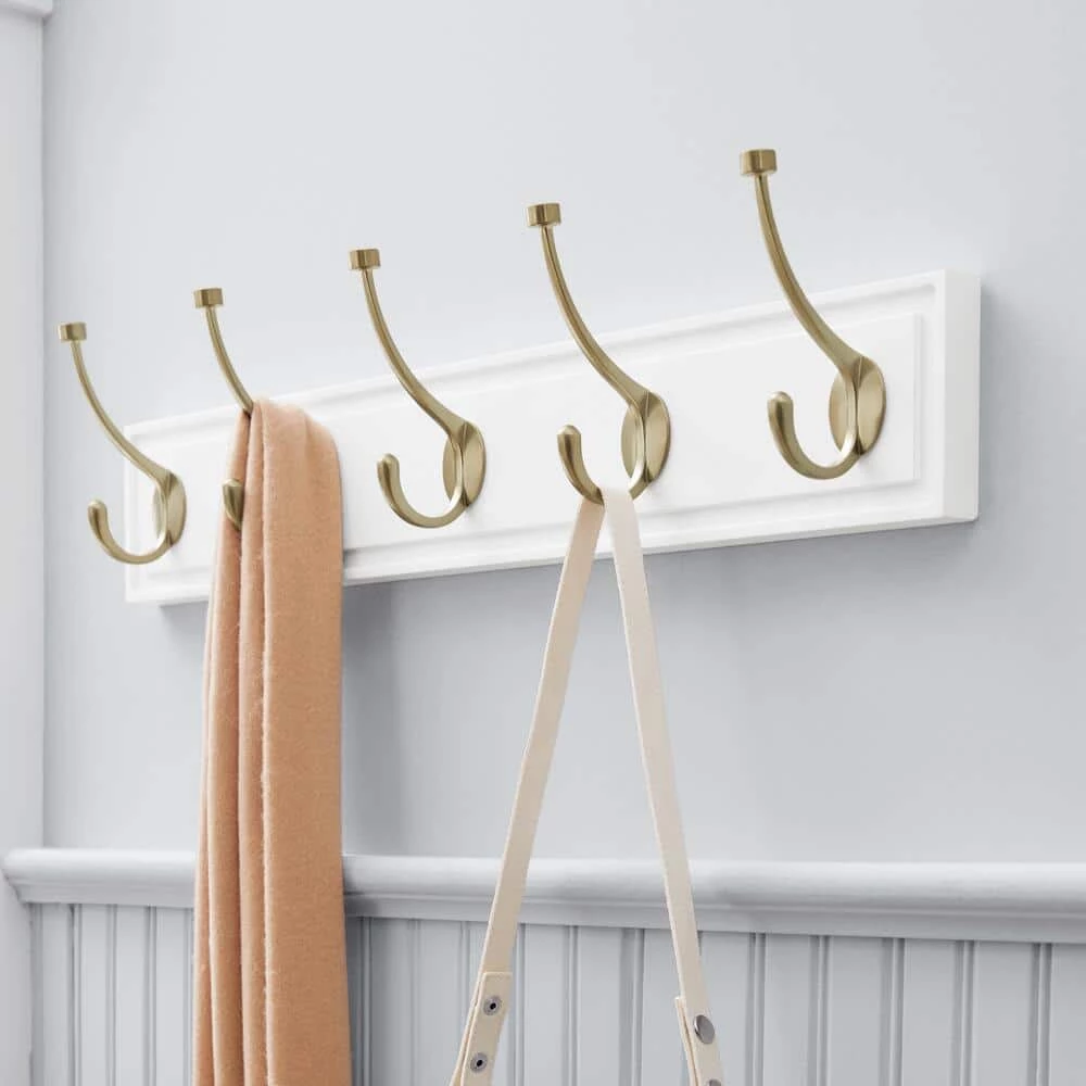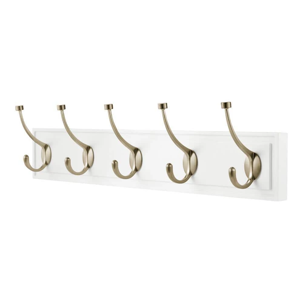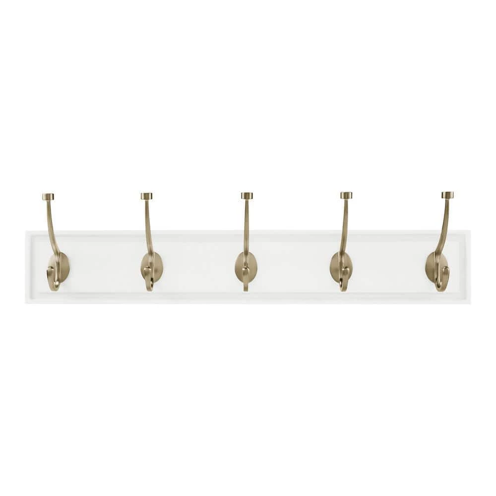 Snap Install 27 in. White Hook Rack with 5 Champagne Bronze Pill Top Hooks by Home Decorators Collection